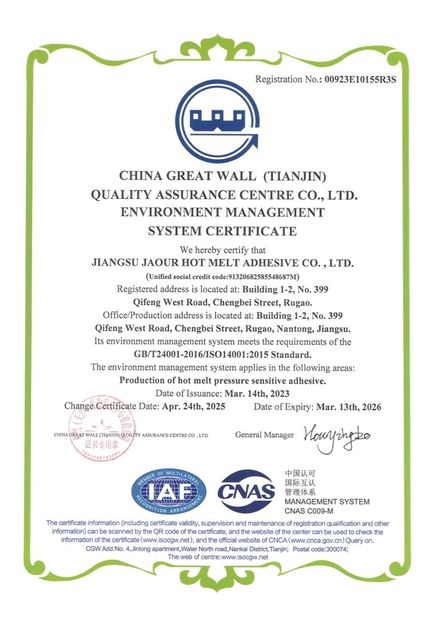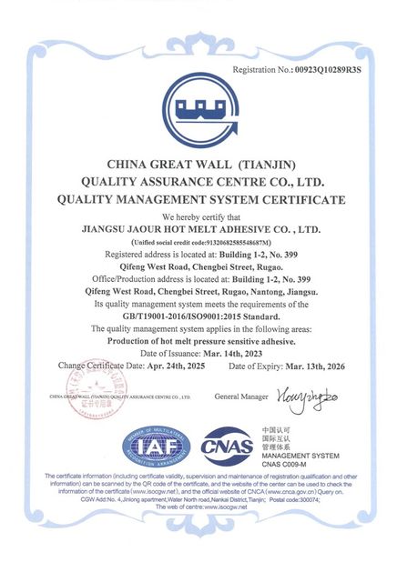 • চীন Shanghai Jaour Adhesive Products Co.,Ltd সার্টিফিকেশন
